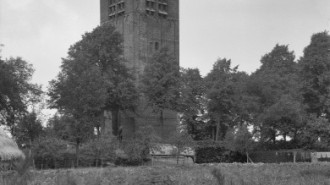 Kerktoren. Overblijfsel van de middeleeuwse kerk van St. Lucia, waarvan het XVe eeuwse koor nog bleef bestaan toen in 1821 een nieuw schip gebouwd werd; omstreeks 1933 zijn koor en schip gesloopt.