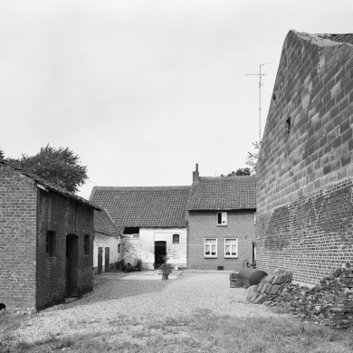 Sint Agathahoeve, opgetrokken van baksteen, gedeeltelijk met speklagen om een gesloten binnenplaats, alwaar twee kruiskozijnen van Naamse steen en rondboogpoortjes; omlijst door hetzelfde materiaal. Aan de straat wapensteen. De Geloes 1887.