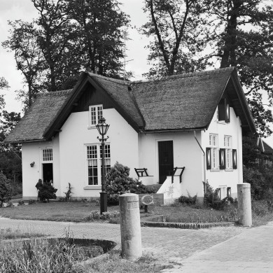 PORTIERSWONING 'DE KETTING'. Aan het begin van de rechte oprijlaan naar Houdringe is de portierswoning gelegen, gebouwd in 1902 door de timmerman J.Termaaten uit De Bilt in opdracht van G.H.L. baron van Boetzelaer. Het witgepleisterde pand met donkere plint heeft één bouwlaag met een kapverdieping en is gedeeltelijk onderkelderd. Aan de zuidzijde een opkamer die via een aparte opgang aan de voorzijde van het pand bereikbaar is. Tussen twee muurtjes bevindt zich een trap van vijf treden die naar een klein bordes met de deur leidt. Op de muurtjes aan weerszijden van het bordes zijn bankjes geplaatst. De voorgevel (west) heeft een risalerend middengedeelte met een ver overstekend rieten zadeldak dat de hoofdkap, eveneens een rieten zadeldak, haaks snijdt. Aan de rechterzijde van de woning bevindt zich een uitbouw onder een lessenaarsdak. Het pand heeft verschillende venstervormen, die alle zijn voorzien van roeden en deels van halve luiken. Het kelderlicht is beveiligd met diefijzers.