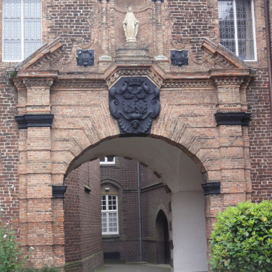 Carmelietenklooster, gesticht in 1652 en bestaande uit vier vleugels die een gewelfde kloostergang omsluiten. Poortgebouw tussen kerk en klooster, met bogen en graatgewelf en met rustiek verband in baksteen, met dorische pilasters en hoofdgestel; in het poortgebouw de toegang tot het slot, in klassicistische stijl geheel in geprofileerde en gekapte baksteen uitgevoerd; met jaartal 1653. Boven de doorgang in dit poortgebouw de wapens van graaf Albert van den Bergh en Madeleine de Cusance. De noordelijke en de oostelijke vleugel uit 1653 en volgende jaren, met in baksteen uitgevoerd blokverband om de vensters, welke door profiellijsten ingesloten spitse boogvelden hebben, versierd met vlak cartouche-ornament, in het metselwerk uitgehakt. Zuidelijke en westelijke vleugel in 1707 voltooid, vensters met natuursteenomlijsting en segmentvormig overtoogd. Aan de zuidzijde het voormalige Gymnasium, in 1707 gebouwd (jaarankers), aan de Steenstraatzijde bekroond door een top met dubbelgezwenkte booglijnen, voorzien van toppilaster, een ronde nis met portretbuste, waterlijsten en natuurstenen vensteromlijstingen. In de met gestucadoorde graatgewelven op consoles overkluisde kloostergang achttien gebrandschilderde glazen, na oorlogsschade hersteld, mogelijk naar ontwerp van Abraham van Diepenbeeke; de voorstellingen, gewijd aan de Carmel, omlijst door cartouches en bekroond door de wapens van de stichters (de grafelijke heren en hun familie); achtereenvolgens als hoofdgegeven de Carmelheiligen Elias, Eliseus, Teleaphorus, S erapion (1634), Anastasius (1655), Gerardus, Joseph (1655), Angelus (1680), Lodewijk (1664), Simon Stock (1655), Francus (1655), Albertus (1684), Jacobus de Ossa, Petrus Thomas, de Processie van Chester (1684) Avertanus en Romaeus, Maria Magdalena de Pazzi (1664) en het heilig Bloed mirakel (1684). Geschilderde portretten van graaf Albert van den Bergh, tweemaal diens vrouw Madeleine de Cusance, graaf Oswald van den Bergh, diens vrouw Maria Leopoldina van Rietberg, Franz von Hohenzollern van den Bergh, diens vrouw Maria Catharina Truchsess von Waldburg-Zeil, Johan Baptist van den Bergh en Hohenzollern, Maria Theresia van den Bergh en Hohenzollern (als stiftsdame van Remiremont). Voorts schilderijen Aanbidding der Wijzen (17e eeuw) driemaal een Kruisiging (alle 17e eeuw), Pieta, Emmausgangers (17e eeuw). Aan de achterzijde van het klooster de ommuurde kloostertuin; een hoge muur, afgedekt met een ezelsrug en opgetrokken in rode handvorm baksteen in kruisverband; in de muur twee tegeltableau's met voorstelling en van de Moeder Gods met het Kind (onderschrift "DILECTUS MEUS MIHI ET EGO ILLI") en H. Josef met het Kind (onderschrift "ST. JOSEF").