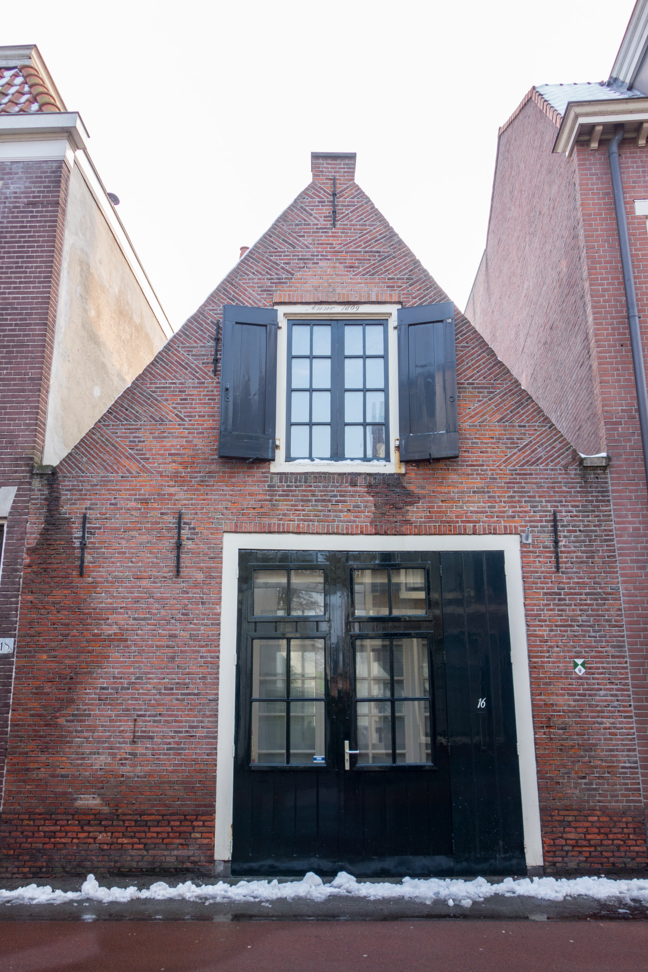 Lage woning deels met rechte kroonlijst, deels topgevel, 18e eeuw.