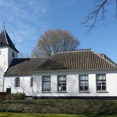 Herv. Kerk. Eenvoudige, eenbeukige en gepleisterde dorpskerk, waarvan de toren (apart monumentnummer 10071) en de noordzijde van het schip waarschijnlijk nog uit de 12e eeuw dagtekenen. Het driezijdig gesloten koor dagtekent vermoedelijk uit de 15e eeuw en de zuidzijde van het schip werd in later tijd verbouwd. De kerk bezit ondermeer: een gotische, hardstenen voet onder de preekstoel, mogelijk afkomstig van een doopvont; een kastje waarin een borstbeeld uit 1722, blijkens een cartouche met Lodewijk XIV-lofwerk daaronder, voorstellend burgemeester Echbert Klop Hooghryk en een zerk uit 1544.