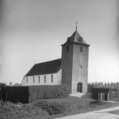 Herv. Kerk. Eenvoudige, eenbeukige en gepleisterde dorpskerk, waarvan de toren (apart monumentnummer 10071) en de noordzijde van het schip waarschijnlijk nog uit de 12e eeuw dagtekenen.