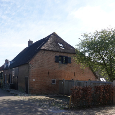 Grote, goed bewaarde boerderij. Op L-vormige plattegrond. 18e eeuw. Rieten schilddak, goede deuren met geprofileerde kalven, hijsluik in de zijgevel van de stal. Vensters met schuiframen, stal met overstek, hooiberg.