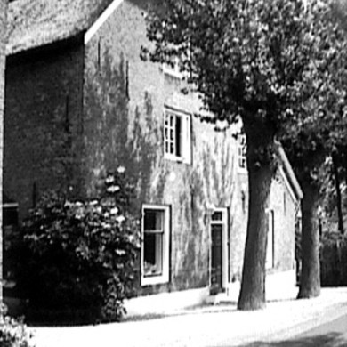 Eenvoudige boerderij (XVIII ?) met puntgevel en hoog rieten dak.
