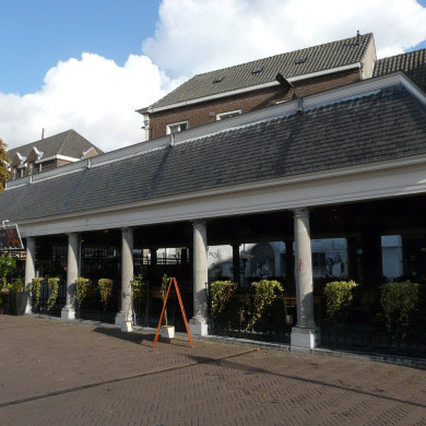 De Vismarkt. Open hal met door leien gedekte kap op dorische hardstenen zuilen met hoofdgestel. Was oorspronkelijk driebeukig, doch de twee binnenste zuilenrijen zijn in 1906 weggebroken; toen is ook de kap vernieuwd. Eind achttiende eeuw.