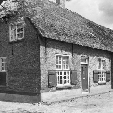 Boerderij van het Brabantse langgeveltype. Onder met riet en pannen gedekt zadeldak tussen puntgevels, waarvan de linker vlechtingen heeft. Gedateerd in de sluitsteen van de getoogde staldeur: 1837. Het woongedeelte heeft vensters met luiken.