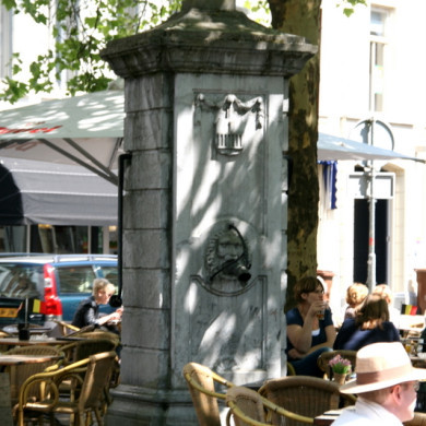Hardstenen pomp uit 1790 midden op het Marktplein, omgeven door vier hoge lindebomen, die in sterke mate de sfeer van het pleintje bepalen.