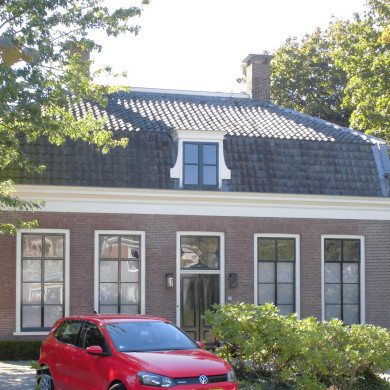 Lage woningen, 18e eeuw, met rechte gootlijst en roedeverdeling vensters.