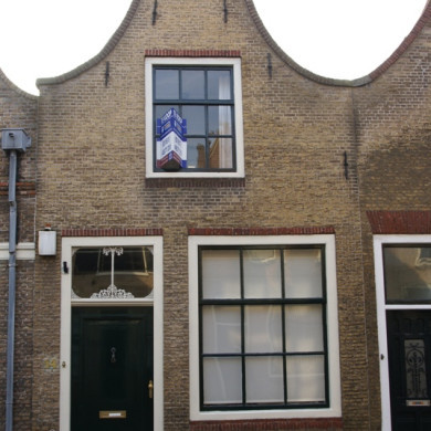 19e eeuwse stadsboerderij bestaande uit een woonhuisgedeelte met binnenplaats en een evenwijdig daaraan gesitueerd houten schuurgedeelte, gelegen aan het eind van de Kaaistraat tegen de stadswal en voorzien van een stoep met stoeppalen.