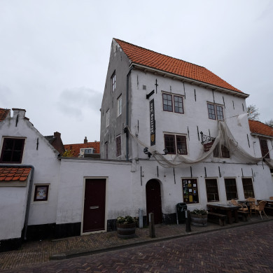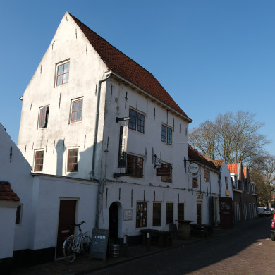 Fraai hoog pakhuis (XVII ?) met gewitte gevels en hoog zadeldak tussen puntgevels. Parterre en twee verdiepingen. Oude raamkozijnen (tweelichten) met luiken, muurankers.