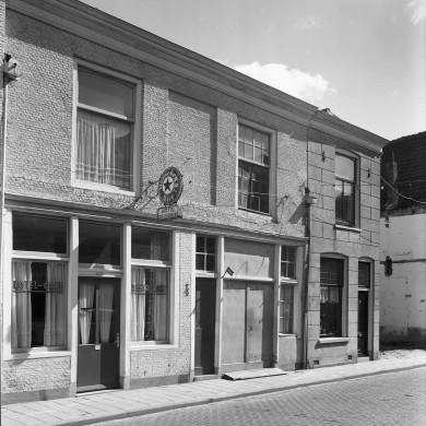Hoekpand Zuidspuistraat (Luxortheater). Huis (XVII) van parterre en verdieping met gesausde lijstgevels en hoog schilddak met topeikels. Dakvenster met vleugelstukken. Gesneden deur Lod. XV. Tegen het achterhuis in de Zuidspuistraat een pothuis.