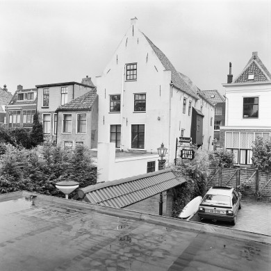 Hoekpand Welleslop. Lijstgevel, vier vensters breed, voor huis van parterre en verdieping (achttiende eeuw), oorspronkelijk bestaan hebben uit twee huizen. Zijgevel aan het Welleslop erker op schraagbalken met korbelen. Hoge, gepleisterde puntgevel aan de achterzijde.