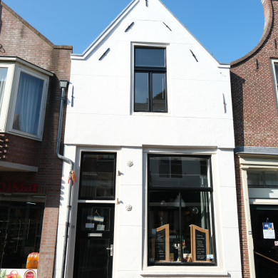 Huis met tuitgevel eerste helft negentiende eeuw met driehoekig fronton en in het venster van de zolderverdieping roedenverdeling uit de bouwtijd.