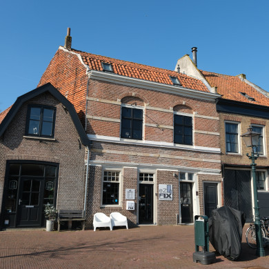 Pakhuis met schilddak (zeventiende eeuw) en gepleisterde lijstgevel. Vormt een fraai geheel met het hoekpand Vischstraat.