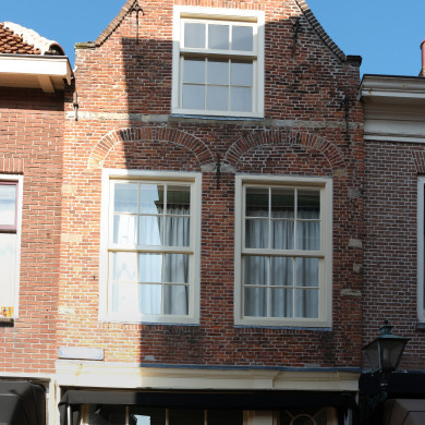Huis met oorspronkelijke trapgevel, verbouwd tot tuitgevel, (XVII A). Hoekblokken, vensters verdieping met geblokte ontlastingsbogen, zoldervenster met raam in stijl XVIII, sierankers.