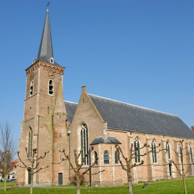 Ned. Herv. Kerk. Tweeschepige hallenkerk opgetrokken van baksteen met natuurstenen banden in de toren. Zuiderpand XIVd, waarvan koor thans ingericht als grafkapel. Haaks op de as der kerk staande, slechts door een gang met de zuidmuur verbonden consistorie, overwelfd, met gebeeldhouwde kraagstenen en schouw midden XV. Hierboven een met spiltrap bereikbare bovenruimte met schouw en ziende kap. Noorderpand XVId met noorderdwarsbeuk en koor. De vroeger aanwezige muurschilderingen zijn op een enkele na verdwenen. Inwendig: preekstoel plm. 1700. Doophek met bankje XVII B. Banken XVIIc en d. Marmeren grafmonument voor Cornelis Ockerse en Johan Daniel Ockerse plm 1745 door H.Seunties. Marmeren grafmonument voor Petrus Mogge plm 1756. Smeedijzeren hek en beschilderd houten schotwerk ter afsluiting van het verhoogde zuiderkoor waarin de hiervoor genoemde monumenten zich bevinden. Aantal grafzerken.