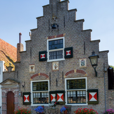 Raadhuis. Pand met trapgevel 1637 van gele baksteen met strekken en togen in rode baksteen. Toppilaster op een gebeeldhouwd kopje. Drie gevelstenen (wapen van Zeeland, Justitia, dorpswapen en jaartal), lantaarnhaak en bel. Aangebouwd bakstenen poortje met zandstenen banden, fries met spreuk en twee wapens, driehoekig fronton.