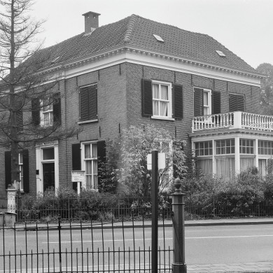 Herenhuis met verdieping en omlopend schilddak op vierkante plattegrond, gedateerd 1843. Vensters met zes- en vierruitsschuiframen; houten kroonlijst. Deuromlijsting met pilasters en hoofdgestel, in welks fries triglyphen en metopen.