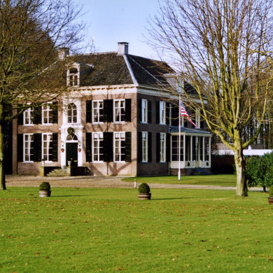 In park gelegen herenhuis, gedateerd 1828, met verdieping en omlopend schilddak. Deur met bovenlicht en in de parterre vensters met zesruitsschuiframen.