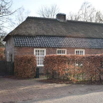 19e eeuws, in schoon werk opgetrokken langgevelboerderij onder met riet en rode Tuile du Nord gedekt wolfdak; in de voorgevel twee T-vensters met drieruits bovenlicht en luiken; deur met drieruits bovenlicht, twee zesruits stalramen, twee getoogde staldeuren en rechtgesloten deeldeuren; in de kopgevel van het woongedeelte kelderlicht, 20-ruits schuifvenster en twee zolderluikjes; in de achtergevel een 4-ruits venster, staldeur en 6-ruits stalraam; tegen de achtergevel twee latere aanbouwen onder met pannen gedekt lessenaardak; oorspronkelijk interieur met kelder, opkamer, bedsteden, klokkast en gestucte balkenplafonds. Op het erf een put.