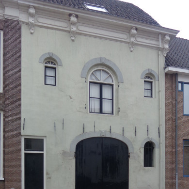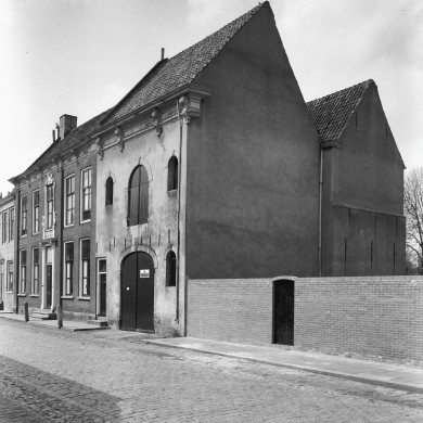 Pakhuis, mogelijk in oorsprong een 16e eeuws woonhuis, onder dwars zadeldak. Links onderkelderd. In de gepleisterde voorgevel beneden vensters met zes- en vierruitsramen en in de verdieping getoogde vensters, waarvan de middelste een hijsluik is, gesloten door luiken met oude gehengen.