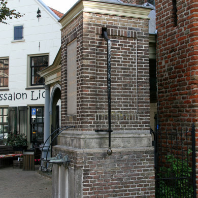 Stadspomp. Bij de toren der Hervormde Kerk een bakstenen pomp met gezwenkte afdekking en aan de vier zijden met rechthoekige spaarvelden, waarvan de voorste een opschrift met het jaartal 1732 draagt.