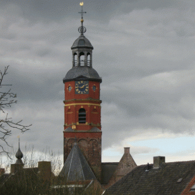Toren van de Ned. Herv. kerk. De toren bestaat uit een kort na 1395 gebouwd, vierkant benedendeel van baksteen, verlevendigd door eenvoudige spaarvelden, waartegen in de 16e eeuw een veelhoekige traptoren aan de westzijde verrees.