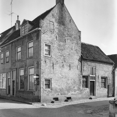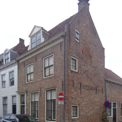 Laat 16e eeuws pand op de hoek van de Bergstraat. Verdieping met zadeldak, rechts afgesloten door een puntgevel met vlechtingen en rookkanaal in de as. Oorspronkelijk een geheel met nr 12. De gepleisterde voorgevel heeft een 19e eeuws karakter met een deuromlijsting door verdiepte pilasters met hoofdgestel.