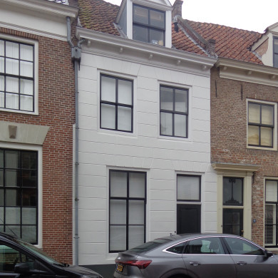 Pand ter breedte van drie vensterassen met verdieping en hoog zadeldak tussen puntgevels met vlechtingen, waarschijnlijk 17e eeuws. Onderkelderd. Deuromlijsting in sobere Lodewijk XVI-vormen. Vensters met 12- en 15- ruitsschuiframen. Dakkapel met gemetselde zijwanden en houten fronton.