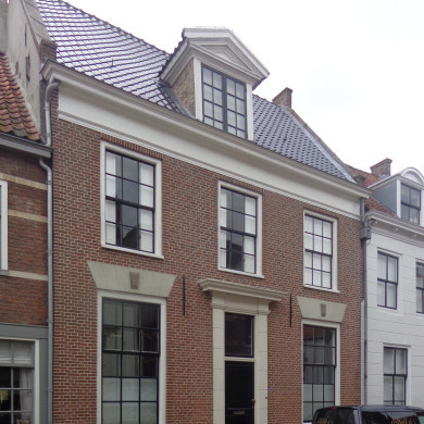 Pand met verdieping en zadeldak, oorspronkelijk laat 16e eeuws en behoord hebbend bij nr 10. Later verhoogd.