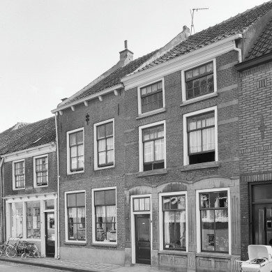 Pand met verdieping en hoog zadeldak tussen puntgevels, waarvan de rechter oorspronkelijk trappen zal hebben bezeten en thans afgedekt is door een rollaag. De gepleisterde lijstgevel heeft een midden 19e eeuws karakter. Smeedijzeren stoephekken.