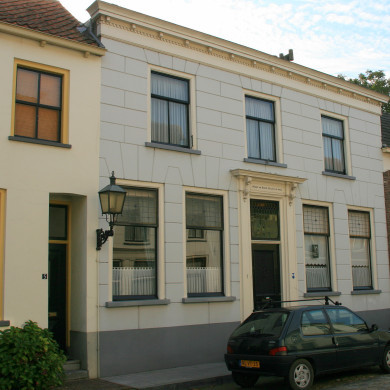 16e eeuws pand met verdieping en zadeldak tussen puntgevels, evenwijdig aan de straat. De gepleisterde voorgevel heeft een eenvoudige deuromlijsting en een bovenlicht met waaiervormig gesneden zwikken, alsmede vensters met zesruitsschuiframen.