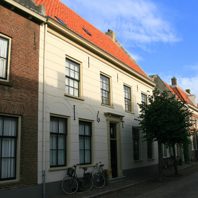 Herenhuis op de hoek van de Kornewal met verdieping en schilddak. De gepleisterde gevels hebben een midden 19e eeuws karakter. Deuromlijsting met zware pilasters en kroonlijst; dubbele deur uit de bouwtijd, stoephek en zesruitsramen.
