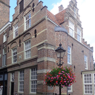 Tussen nr 2 en de Binnenpoort een in oorsprong laat-middeleeuws pand met verdieping en zadeldak. Rechts een overkraging. Inrijdeuren in oud kozijn.