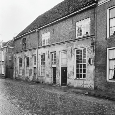 Langgerekt pand, bestaande uit vier woningen, genaamd: Caffagne of Convanje en daterend vermoedelijk uit 1549. Het pand telt een verdieping, van de begane-grond gescheiden door een geprofileerde, bakstenen waterlijst en draagt een zadeldak tussen puntgevels. De vier deuren zijn gevat in nissen, afgedekt met geprofileerde korfbogen en hebben gotische kalven met peerkraalprofielen, waarvan de meest linkse oud is en de andere bij de restauratie naar dit voorbeeld zijn gemaakt. De vensters in de verdieping bezitten bakstenen kruiskozijnen; de begane-grond vensters hebben 18-ruitsschuiframen. Inwendig o.a. moerbalken op peerkraalsleutelstukken. Het pand is gerestaureerd omstreeks 1965.