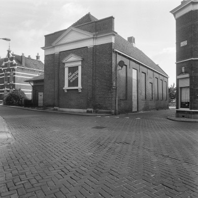 Langgerekt bakstenen GEBOUW onder schilddak; aan de voorzijde een fronton en houten hoofdgestel, 1846.