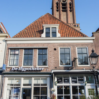 Pand, waarvan de gevel ingezwenkte zijkanten en een 19e eeuwse kroonlijst heeft. Het pand is laat-middeleeuws.