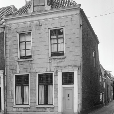 Laat-middeleeuws huis op de hoek van de Lange Meent met verdieping en schilddak, aan de achterzijde afgesloten door een puntgevel. In de gepleisterde voorgevel gehavende muurankers en een vroeg 19e eeuwse deur.