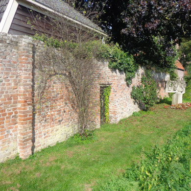 Restant van de 14e eeuwse stadsmuur, westelijk van de Lanxmeersepoort, van belang uit oogpunt van krijgshistorische waarde.