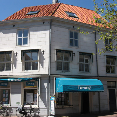 "De Gouden Arck". Pand XVIIa op geknikte plattegrond. Zadeldak tussen puntgevels, waarvan de zuidelijke voluutconsoles heeft. Vensters met geblokte ontlastingsbogen. Aan de W.zijde halfrond uitgebouwde traptoren. Vensters met twaalfruitsschuiframen. Uithangbord.