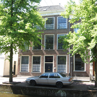 Hoekpand Nickersteeg. Pand met brede lijstgevel (XVIII) van vier vensterassen. Oorspronkelijke deur met gesneden kalf. Geprofileerde vensterdorpels; roedenverdeling stijl XVIII. Stoephek. In de Nickersteeg achter dit pand een muur met tuinpoortje, in getoogde, natuurstenen omlijsting, gedateerd 1628.