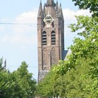 Oude Kerk (St. Hyppolytus, Ned. Herv.). Grote, laat-gotische kerk, resultaat van een reeks verbouwingen en uitbreidingen tussen ca. 1300 en XVIa. Zware, scheefgezakte, bakstenen westtoren (ca. 1300) met natuurstenen spits XIV B, omgeven door vier hoektorentjes en met decoratieve wijzerplaten. Koor, ten dele begeleid door de zuiderzijbeuk ca. 1400. Basilicaal schip XV. Onze Lieve Vrouwekoor, noordelijk van het hoogkoor, St. Joriskapel en noordelijk dwarspand ca. 1520. Deze laatste delen door Rombout Keldermans. Restauratie gereed in 1961. Inventaris: Preekstoel (1548) met renaissancesnijwerk. a. Hoofdorgel: orgel met Hoofdwerk, Bovenwerk, Rugwerk en vrij Pedaal, in 1857 gemaakt door C.G.F.Witte. b. orgel in Noorderzijbeuk: eenklaviers orgel in 1873 gebouwd voor de Schoolstraatkerk te Delft en in 1962 overgeplaatst naar de Oude Kerk. Bij de overplaatsing gerestaureerd en qua dispositie gewijzigd. c. koororgel: een eenklaviers kabinetorgel van ca 1770. Graftombe voor Piet Hein (1629, P. de Keyser ?); tombe voor Elisabeth Morgan (1611, Nicolaas Stone ?); tombe voor M.H.Tromp (1658, van Campen, Verhulst en W. de Keyser); monument in obeliskvorm voor Anth. van Leeuwenhoek (1739); epitaaf voor Van der Dussen (ca. 1613, Nicolaas Stone) en vier andere epitafen (XVII). Eiken tochtportaal XVId. Vele gaaf bewaarde grafzerken. Luiklokken o.a. de Bourdon, gegoten in 1570 door H. van Trier. Oude Kerk (St. Hyppolytus, Ned. Herv.). Grote, laat-gotische kerk, resultaat van een reeks verbouwingen en uitbreidingen tussen ca. 1300 en XVIa. Zware, scheefgezakte,bakstenen westtoren (ca. 1300) met natuurstenen spits XIV B,omgeven door vier hoektorentjes en met decoratieve wijzerplaten. Koor, ten dele begeleid door de zuiderzijbeuk ca. 1400. Basilicaal schip XV. Onze Lieve Vrouwekoor, noordelijk van het hoogkoor, St. Joriskapel en noordelijk dwarspand ca. 1520. Deze laatste delen door Rombout Keldermans. Restauratie gereed in 1961. Inventaris: Preekstoel (1548) met renaissancesnijwerk. a. Hoofdorgel: orgel met Hoofdwerk, Bovenwerk, Rugwerk en vrij Pedaal, in 1857 gemaakt door C.G.F.Witte. b. orgel in Noorderzijbeuk: eenklaviers orgel in 1873 gebouwd voor de Schoolstraatkerk te Delft en in 1962 overgeplaatst naar de Oude Kerk. Bij de overplaatsing gerestaureerd en qua dispositie gewijzigd. c. koororgel: een eenklaviers kabinetorgel van ca 1770. Graftombe voor Piet Hein (1629, P. de Keyser ?); tombe voor Elisabeth Morgan (1611, Nicolaas Stone ?); tombe voor M.H.Tromp (1658, van Campen, Verhulst en W. de Keyser); monument in obeliskvorm voor Anth. van Leeuwenhoek (1739); epitaaf voor Van der Dussen (ca. 1613, Nicolaas Stone) en vier andere epitafen (XVII). Eiken tochtportaal XVId. Vele gaaf bewaarde grafzerken. Naar ontwerp van Joep Nicolas in 1956-72 uitgevoerde reeks van 25 gebrandschilderde glas-in-loodramen in de noordelijke transeptarm (1), aan de uiteinden van beide zijbeuken (24 en 25), in het koor (3 t/m 14), zuidelijke lichtbeuk (15 t/m 17) en zuidelijke zijbeuk (18 t/m 23); twee gebrandschilderde glas-in-loodramen van J. Nicolas van Ronkenstein in de noordelijke transeptarm op de hoek met de noordelijke zijbeuk (uit 1974 en 1984). Klokkenstoel met gelui bestaande uit een klok van H. van Trier, 1570, diam. 230 cm en een klok van J.A. de Grave, 1719, diam. 149,5 cm.