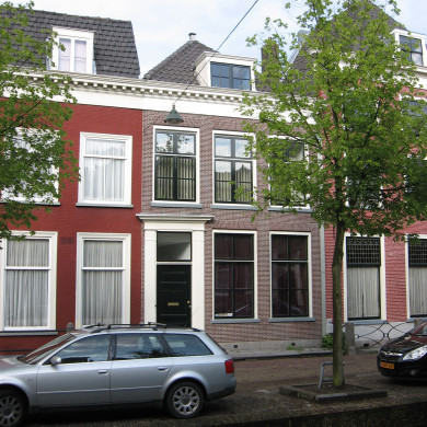 Pand (XVI) met hoog schilddak en statige gevel onder rechte lijst. Drie vensterassen, verdieping met zolderverdieping. Oude muurankers. Oude deuren met pilasteromlijsting en hoofdgestel. Hardstenen stoeppalen met hek (XIXa). De gevel heeft een beschildering met schijnvoegen.