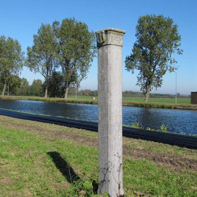 Hardstenen grenspaal voor de markering van de gemeentegrens, voorzien met het wapen van Delft. Van oudheidkundige waarde.