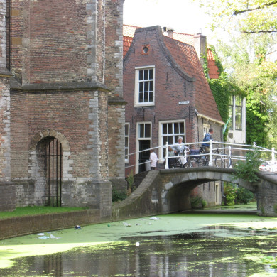 Beiaardschool. Schilderachtig pandje, waarvan de zijgevel oprijst uit het water van het Vrouwenrecht. Van groot belang voor de omgeving van het koor der Nieuwe Kerk. Het zeventiende-eeuwse huis heeft een tuitgevel met in de top een rond venstertje met gebeeldhouwde omlijsting.