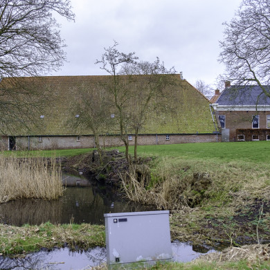 Boerenhoeve. Op de zoom van de Biessumse wierde gelegen boerenhoeve bestaande uit een grote gedeeltelijk met riet, gedeeltelijk met pannen gedekte schuur, met een toegang in de achtergevel naar de osseweg.