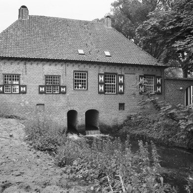 Waterradmolen aan het beekje de Vlier. De jaarankers gevel 1631, maar het huidige gebouw schijnt uit 1690 te dagtekenen. In 1816 buiten werking gesteld, toen in het dorp een standaardmolen gebouwd werd (in 1926 gesloopt). Onder de rand van het pannendak bakstenen consoles van een verdwenen kroonlijst. Strekken boven de vensters, die ramen met kleine roedenverdeling hebben. Segmentbogen over het water.