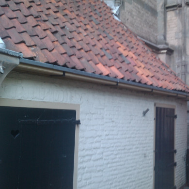 Gepleisterd pandje zonder verdieping, achttiende eeuw, onder lessenaarsdak tegen de Mariakerk.