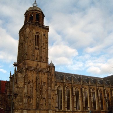 Onderkelderd pand met in- en uitgezwenkte topgevel voorzien van vijf pinakels, die gedekt zijn met geprofileerde natuurstenen platen. Op de verdieping natuurstenen kruiskozijnen met geprofileerde middendorpels, met luiken behangen en met ontlastingsbogen. Bakstenen tandlijsten en sierankers.